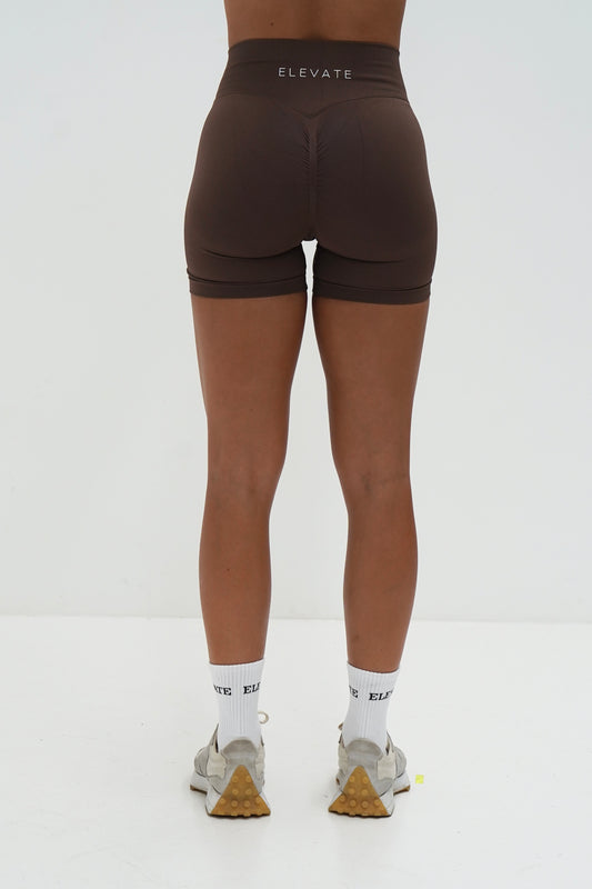 AMPLIFY SCRUNCH SHORTS- CHOCOLATE